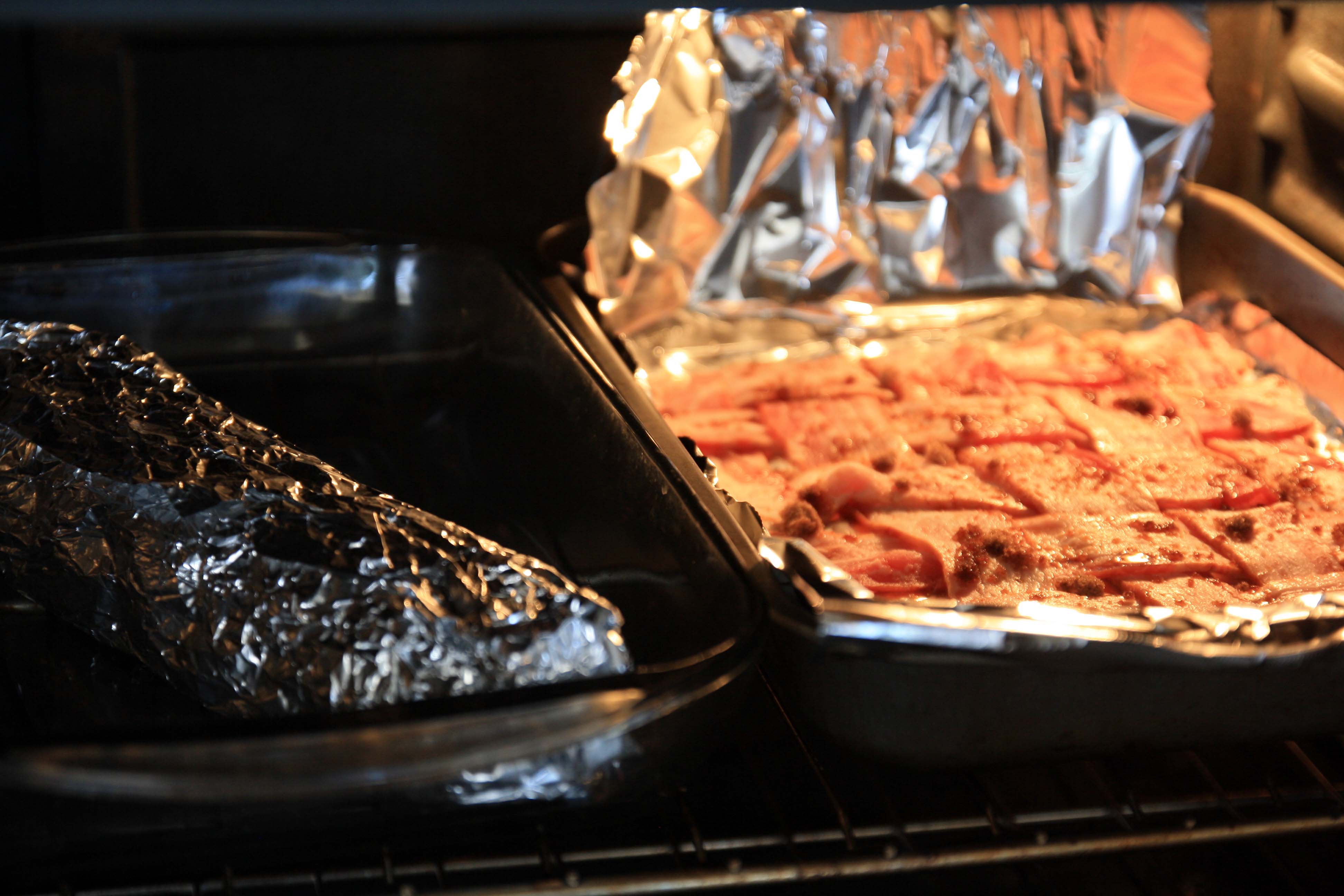 Wrap it up tightly and bake in the oven, along with the bacon weave.