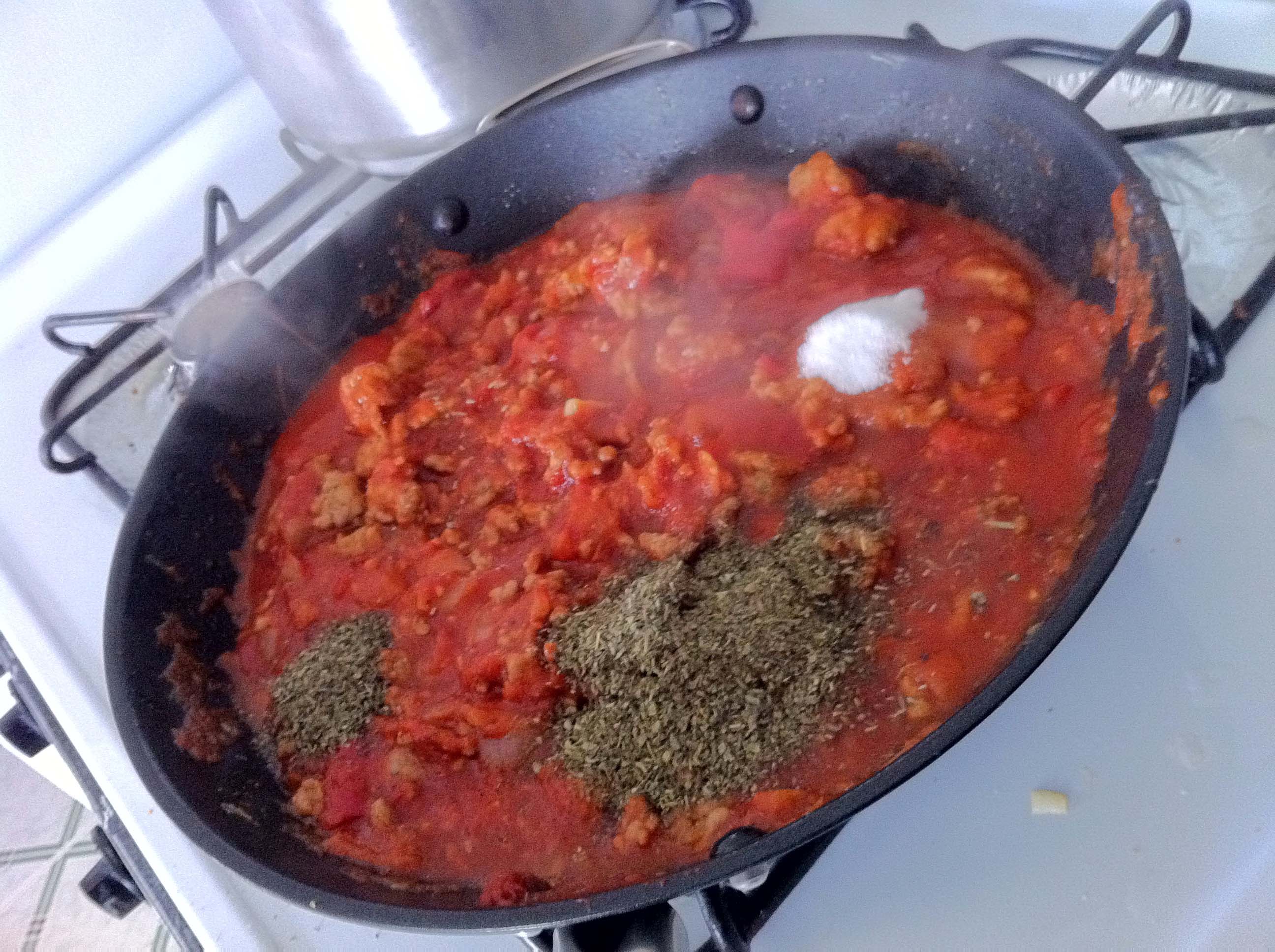 And you can’t forget the sauce. and Italian seasoning. lots and lots of Italian seasoning.