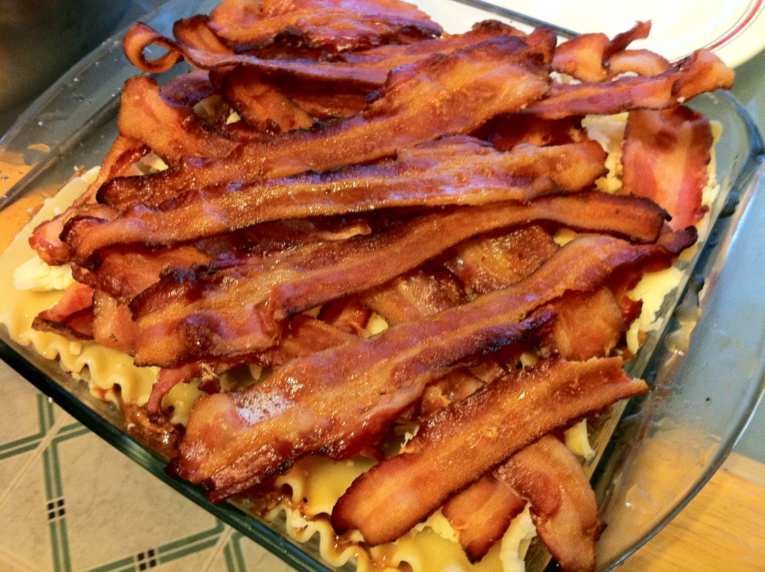 This was my very first ‘epic meal’ inspired creation. What could I make that was so out there, yet tasted good? Lasagne with all parts of a pig! a Porksagne!