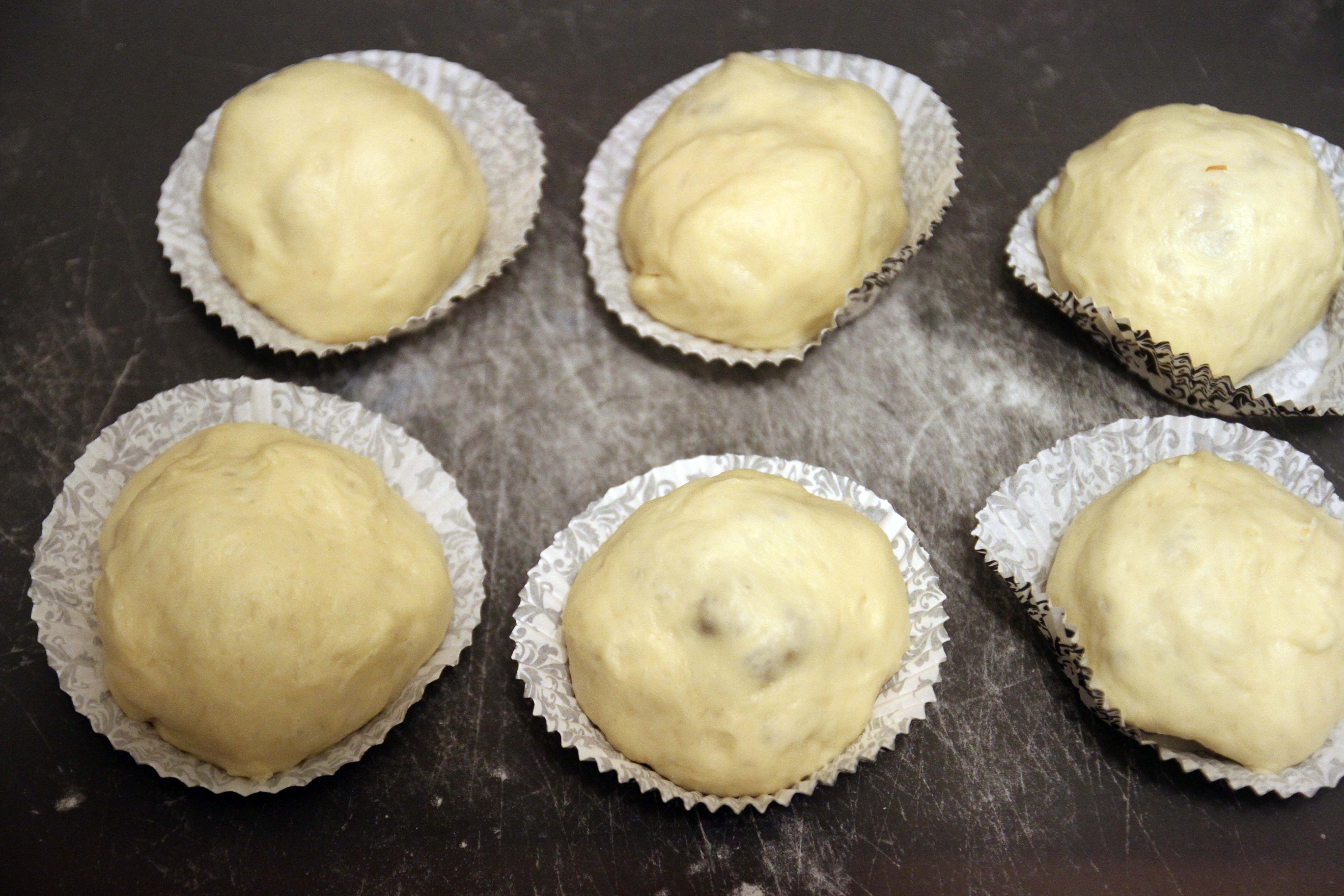 Place the finished buns aside, on a piece of parchment paper. I ran out of paper, so I used cupcake liners.