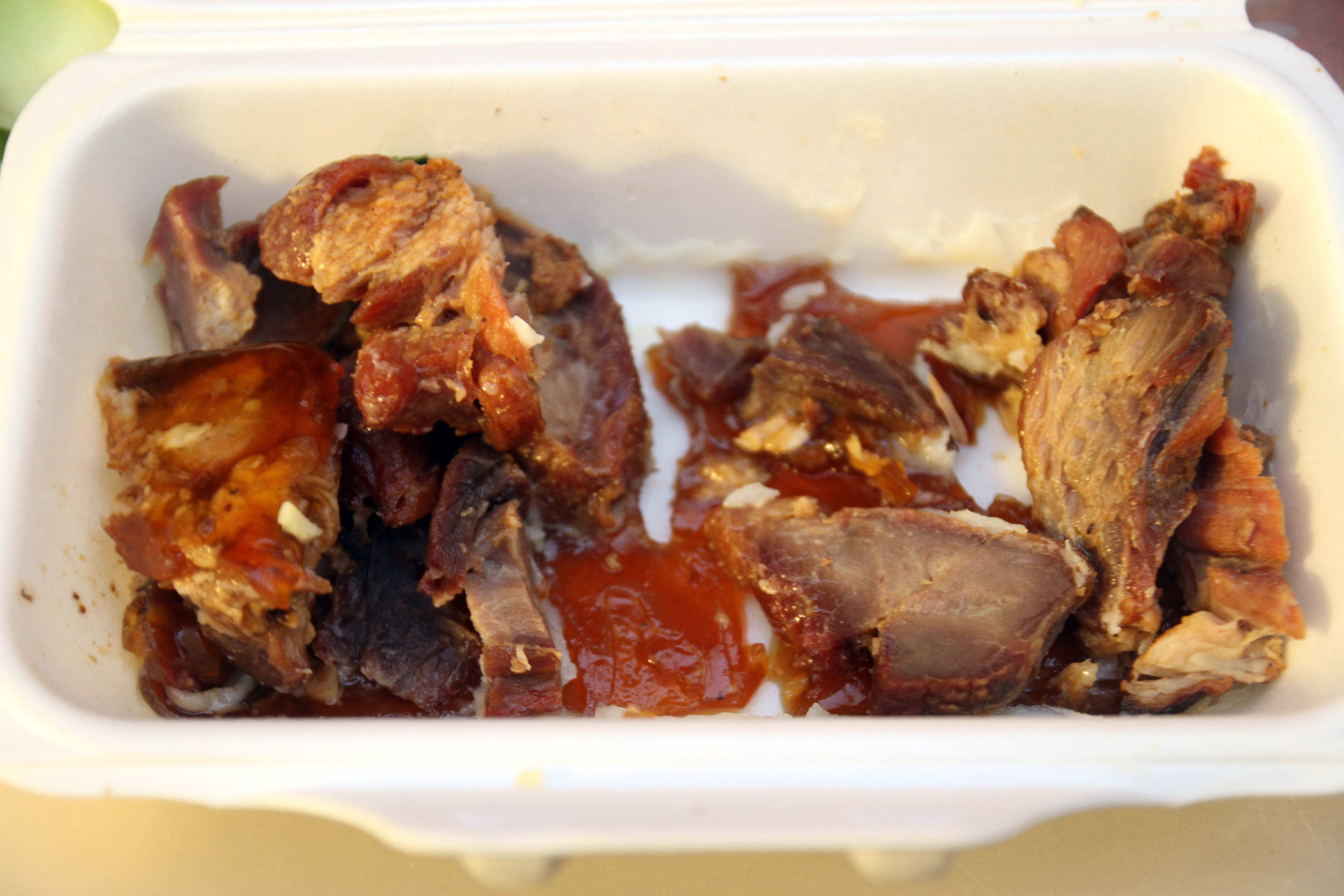 - Leftover BBQ meat [Vegan: Deep fried tofu]