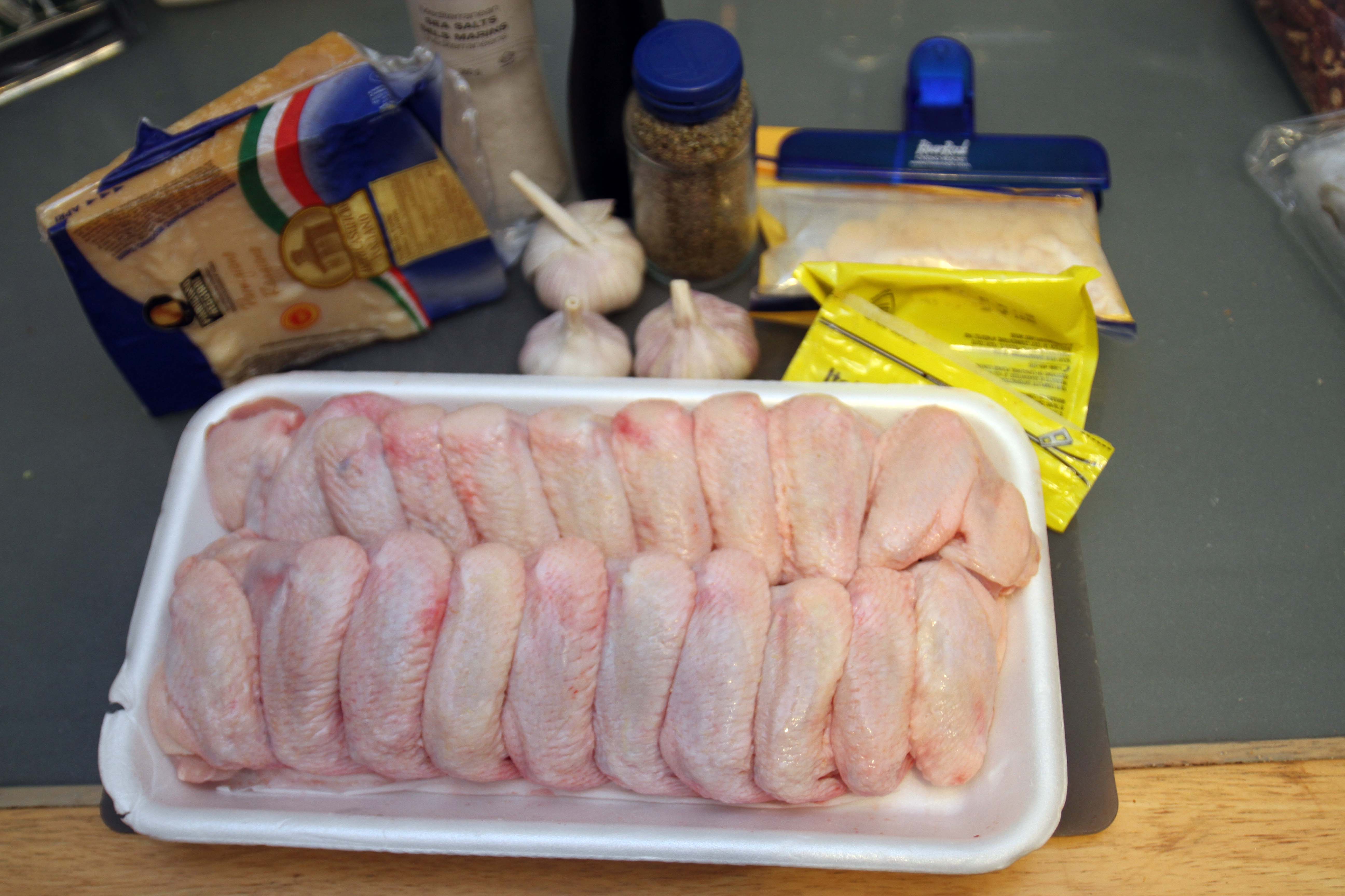One of the things my friends and I always used to do back in our younger days was go out for ‘Wings Wednesday’ at pubs. We also used to eat at various establishments that specialized in wings, such as Wingnuts (my all time favourite place for wings, RIP), and Wings. Growing older, I realized I could easily make wings at home, suited to my tastes. What do I like? Garlic and cheese of course! This recipe bakes wings instead of deep frying, and loads up on the flavour (duh!)
