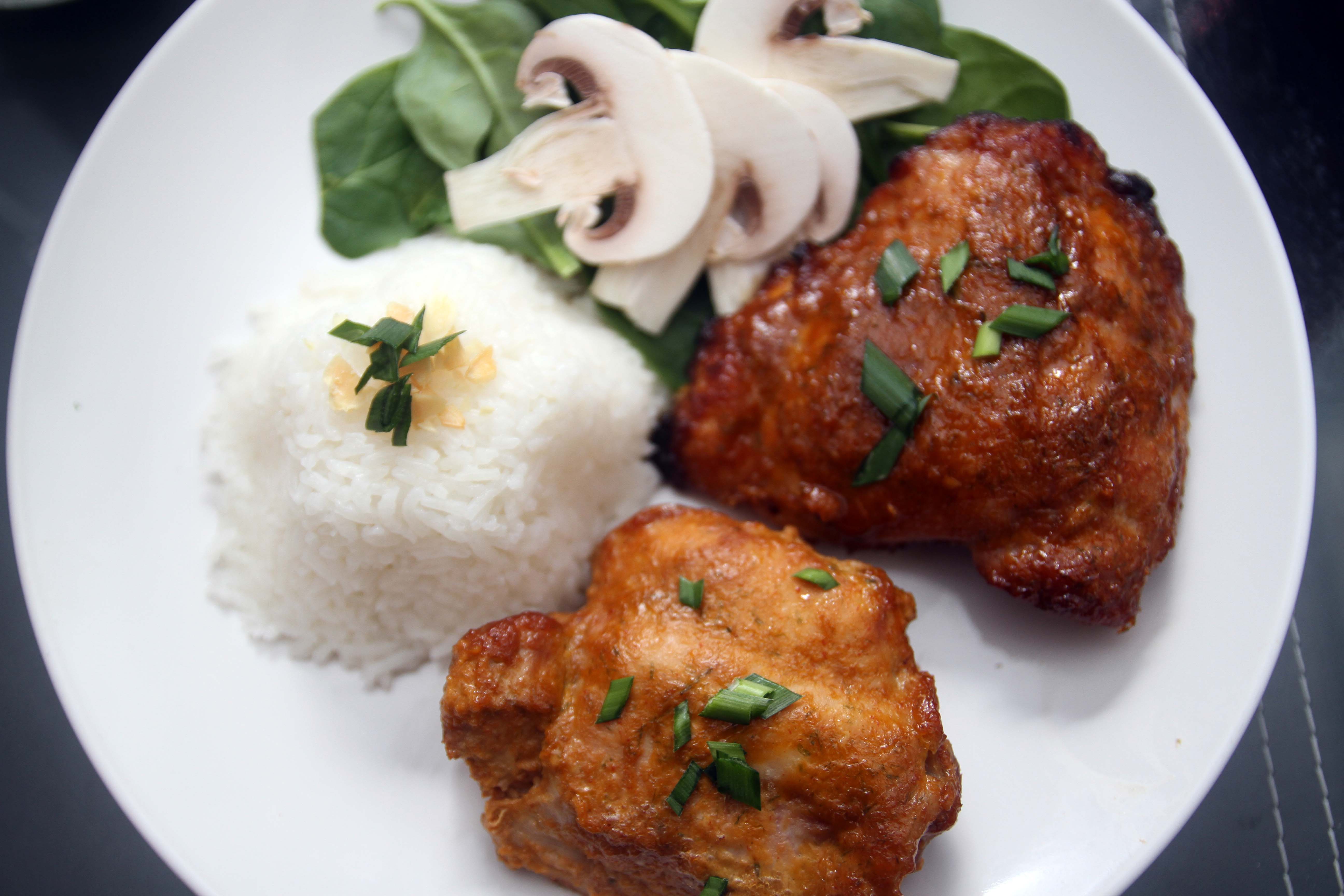 Ta da! There you have it — Marpole Honey Sriracha Chicken! Since sriracha is associated with nammer food, why not have an avocado shake with the meal? Pair it with some basic greens and rice, and it’s a Canadianized take on a Vietnamese meal! 🙂