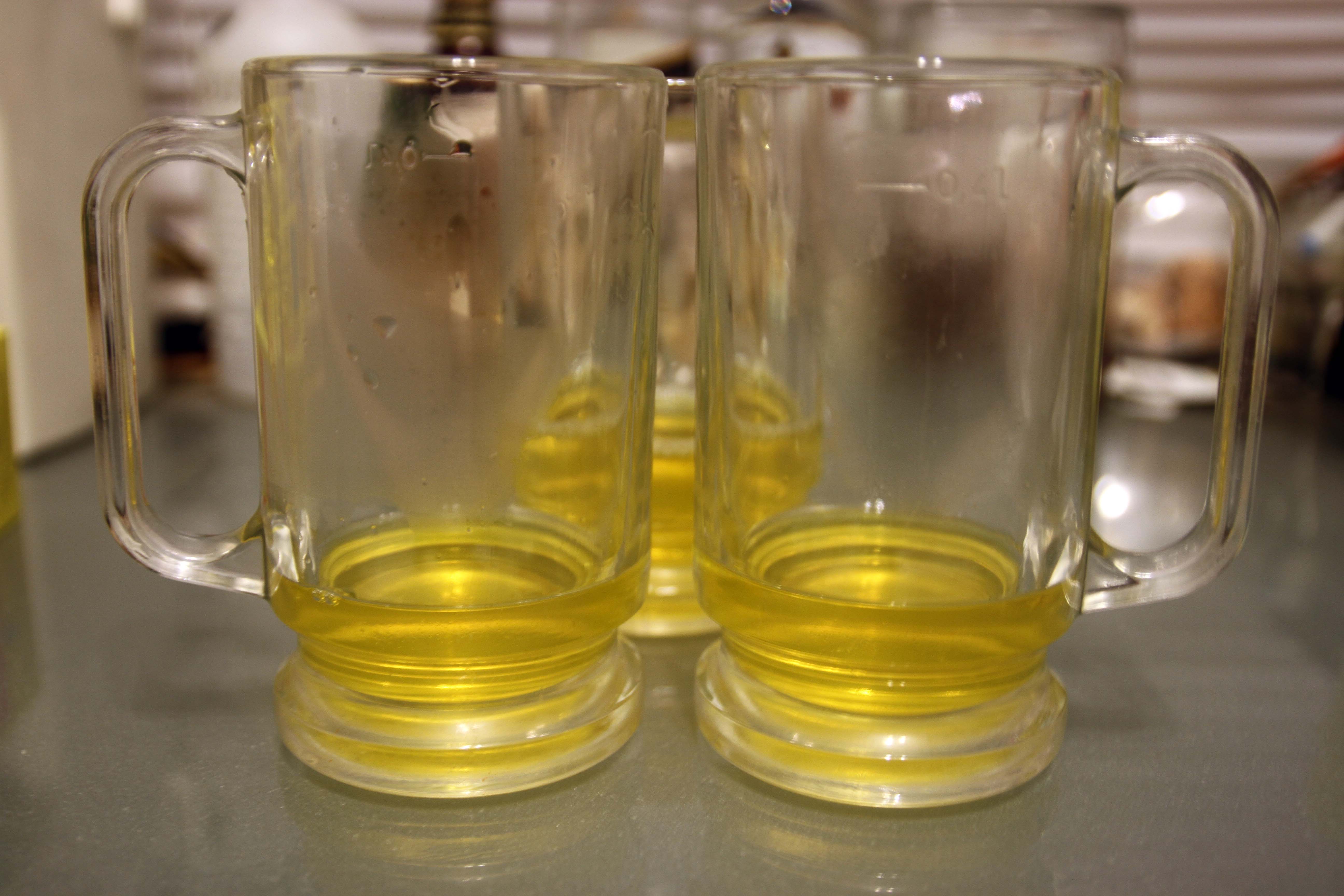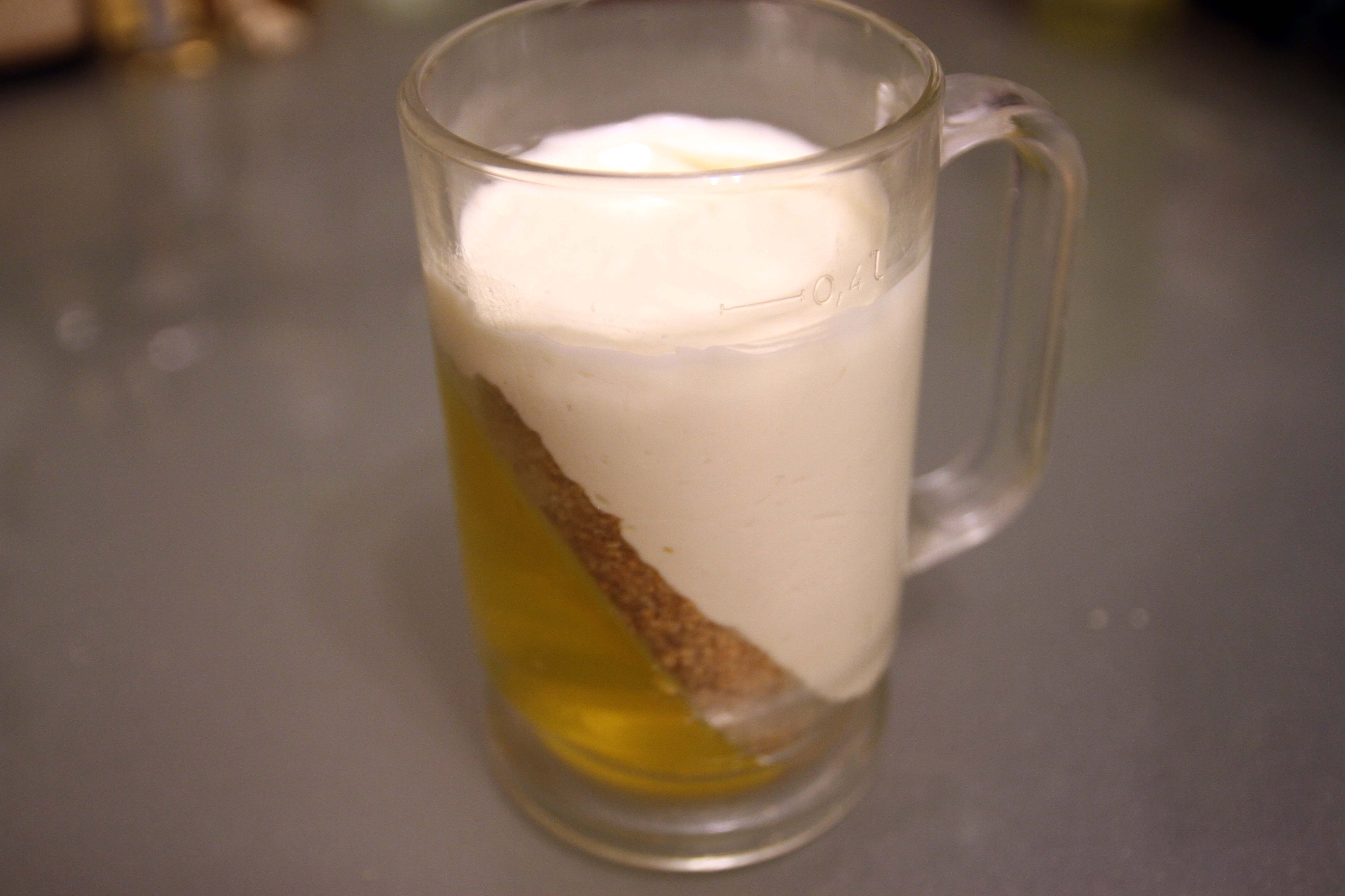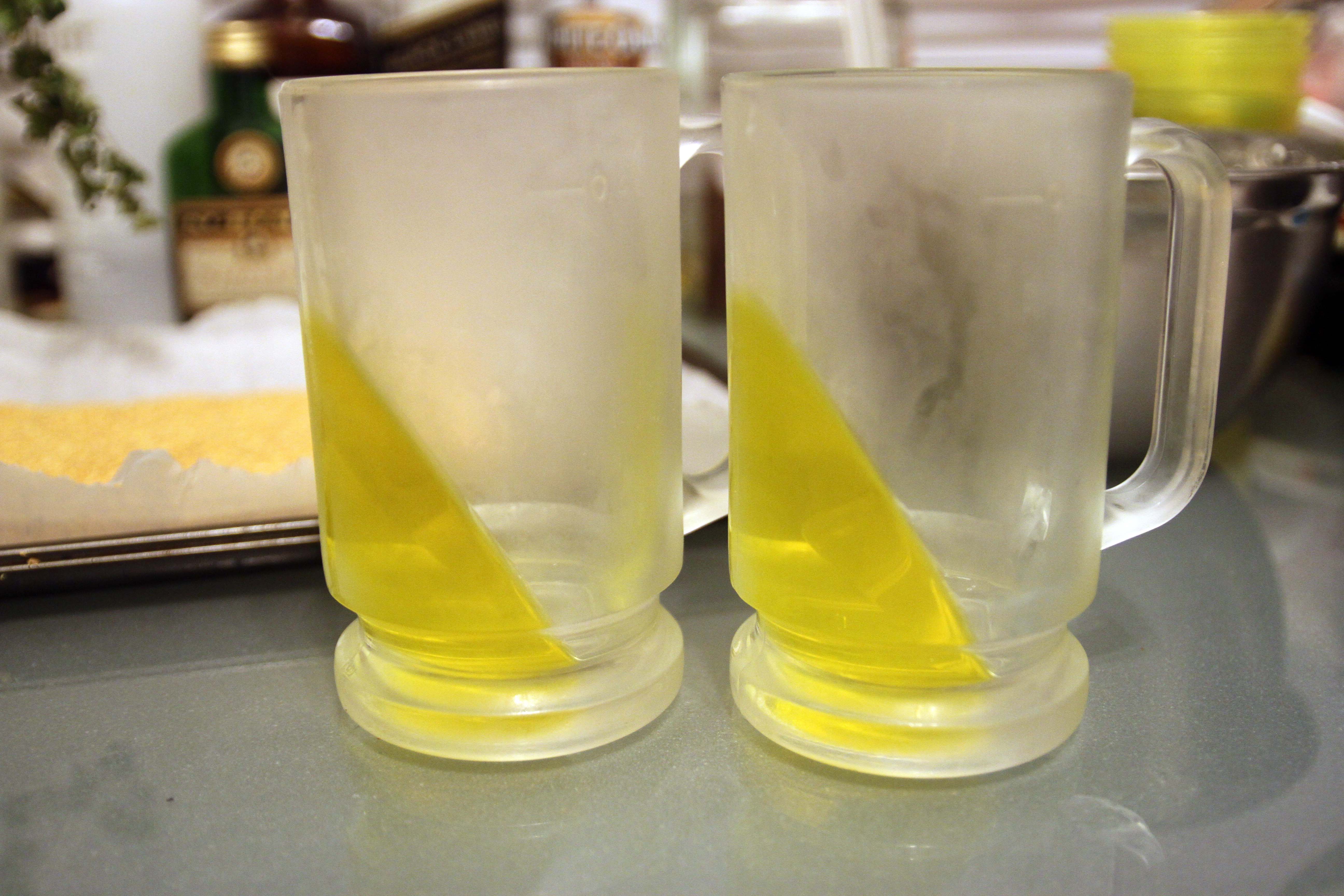 After mixing, put it into your container. As I said up above, my container of choice today? Beer Mugs!