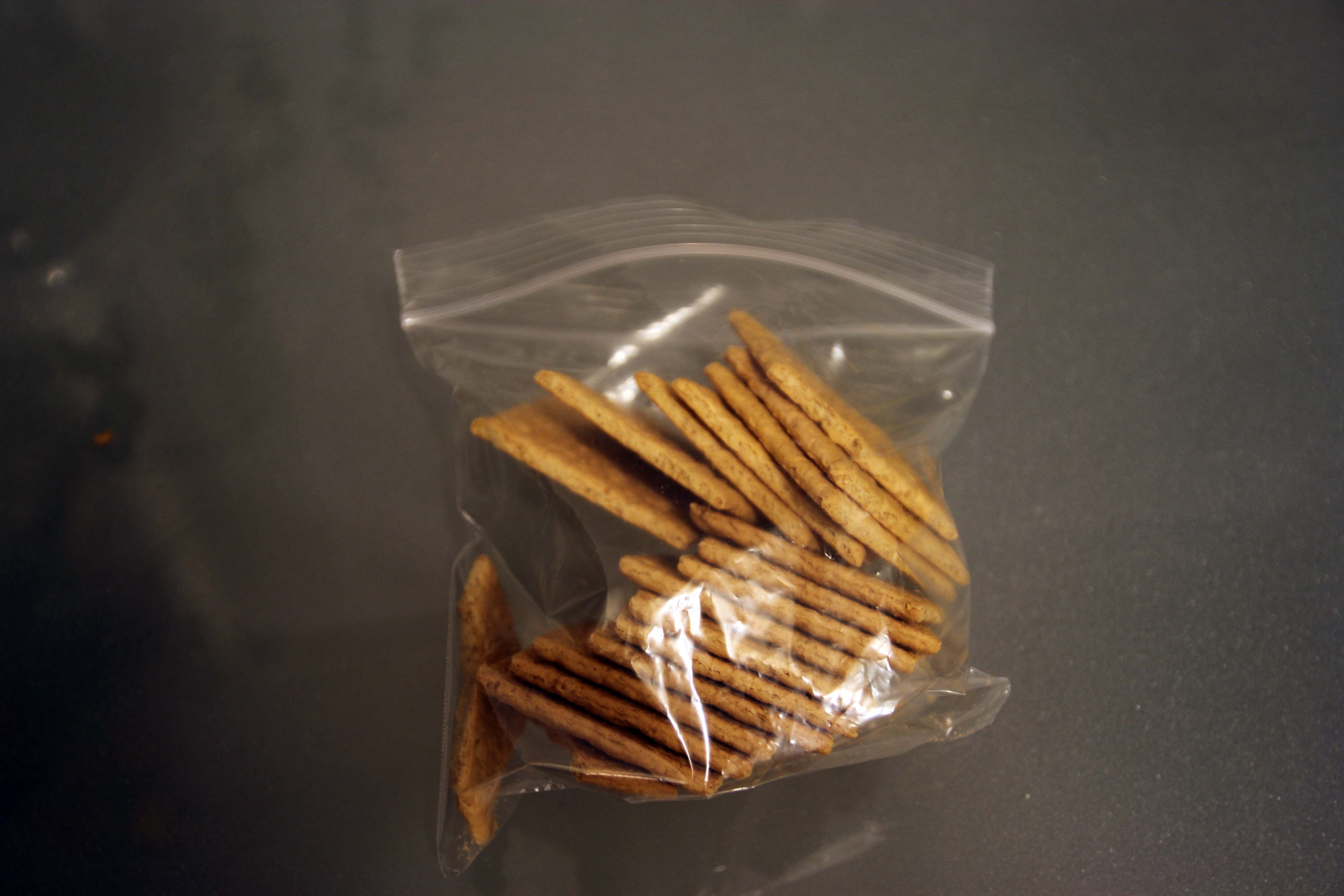 While this is happening, we can create the crust layer. Grab about 10-20 graham wafers, and smash the begeezus out of them.
