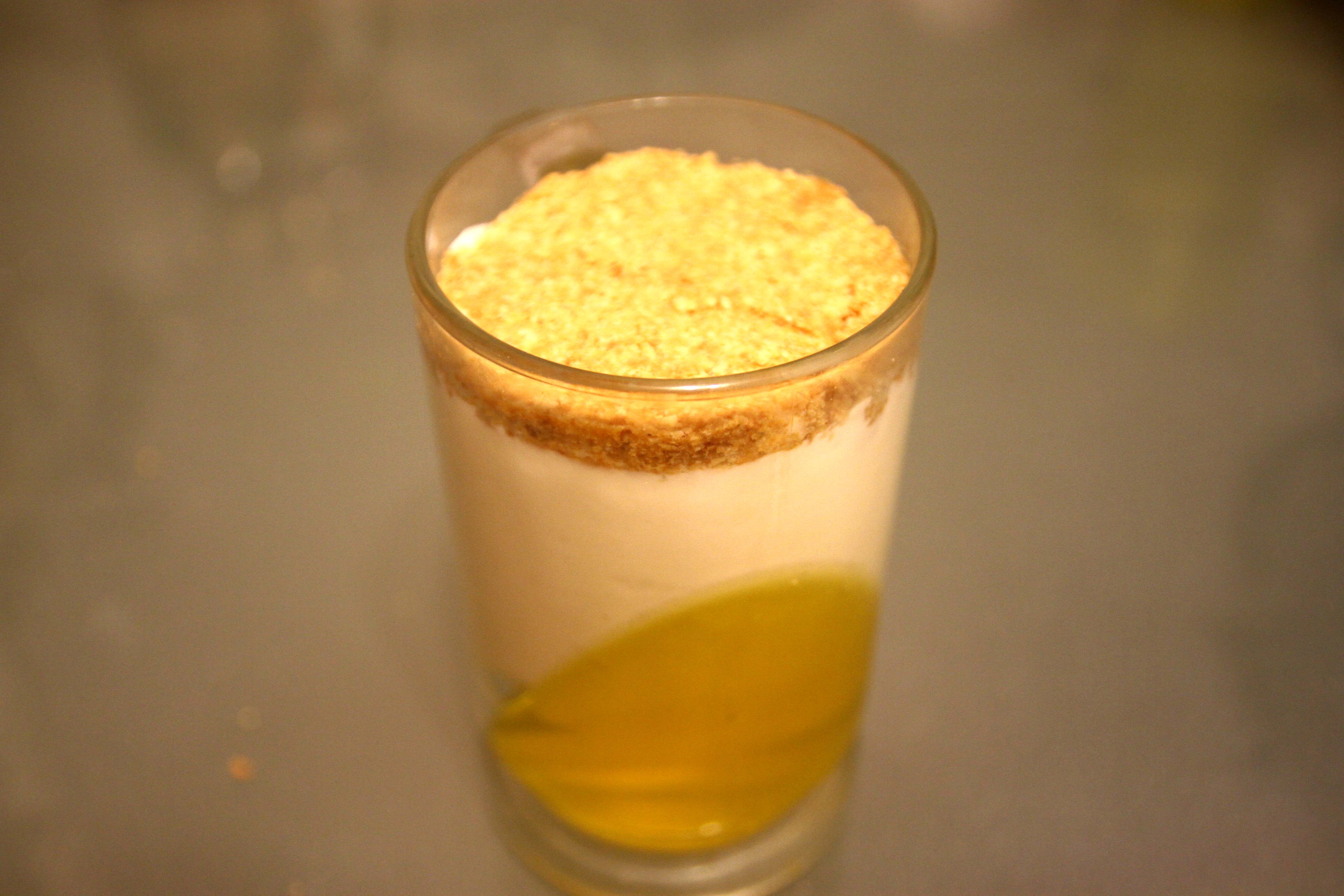 Push it right up against the glass. Throw the cheesecake mixture into a piping bag, and fill up the mug.