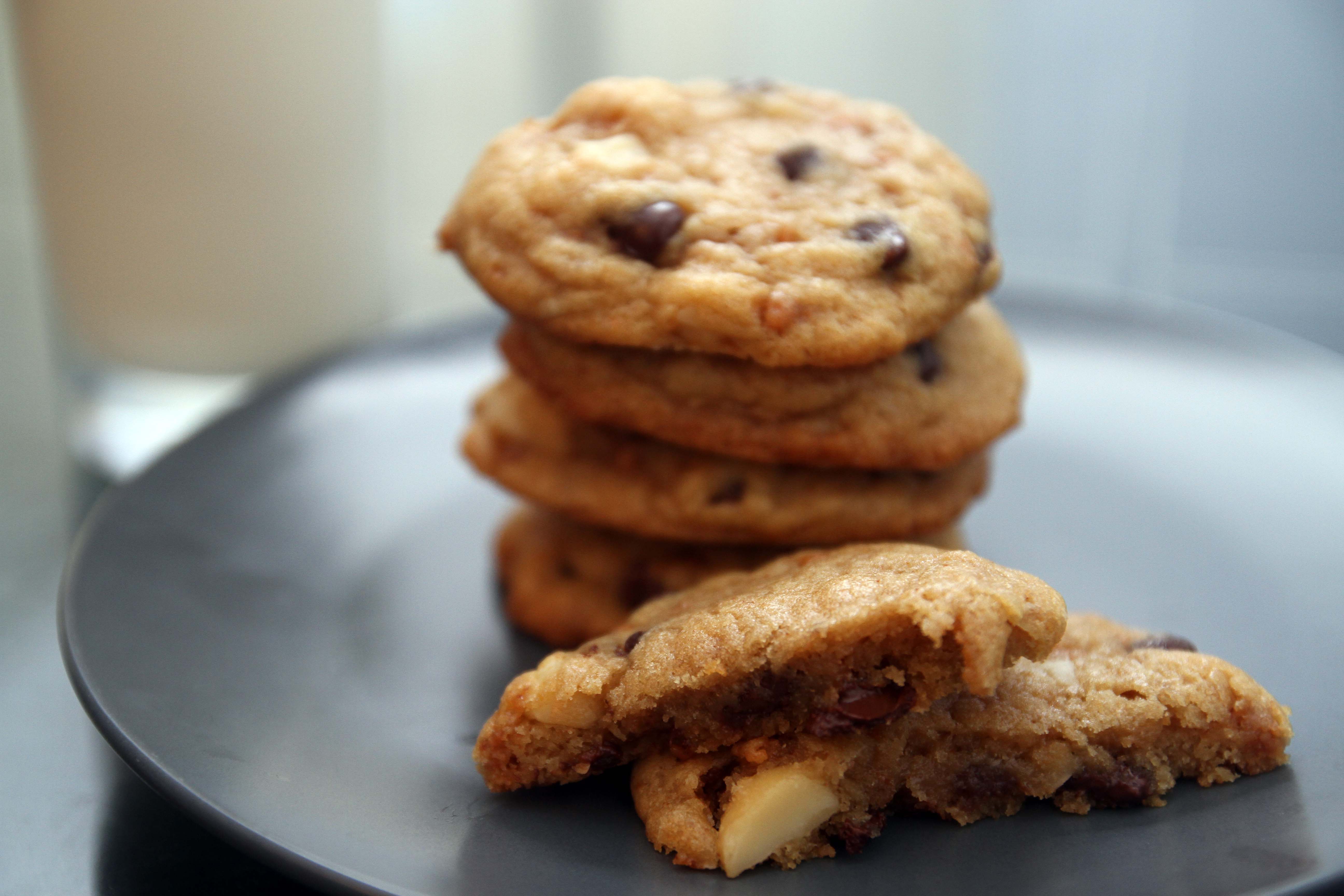 Ta da! There you have it! Moreish Chocolate Macadamia Nut Cookies with Skor bits! Seriously, these are super addictive. The best part is that you keep the dough in the fridge until you want to bake it. Freshly baked cookies taste phenomenal!