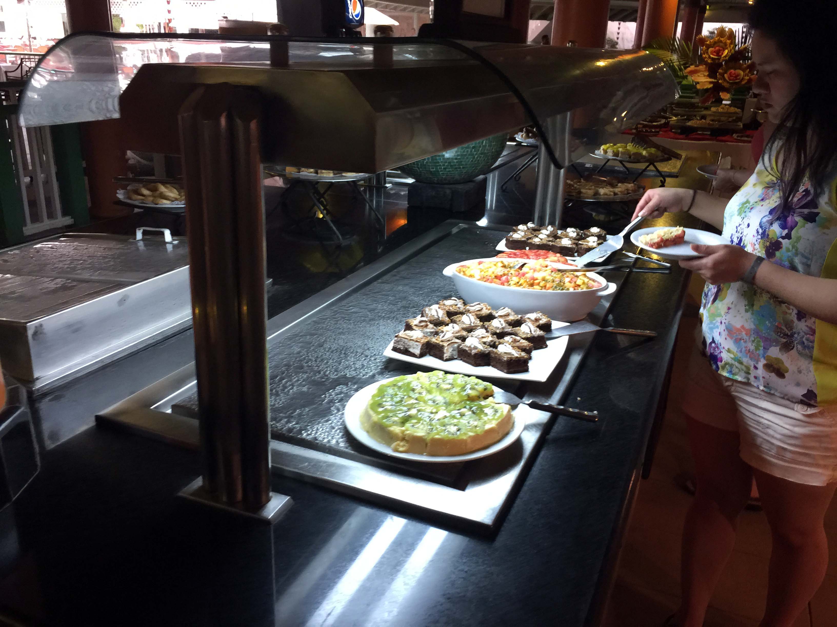 Every morning there was a cook making eggs to order, and every evening there was a carving station with a different meat. Turkey, Lamb Leg, Roasted Chicken, etc.