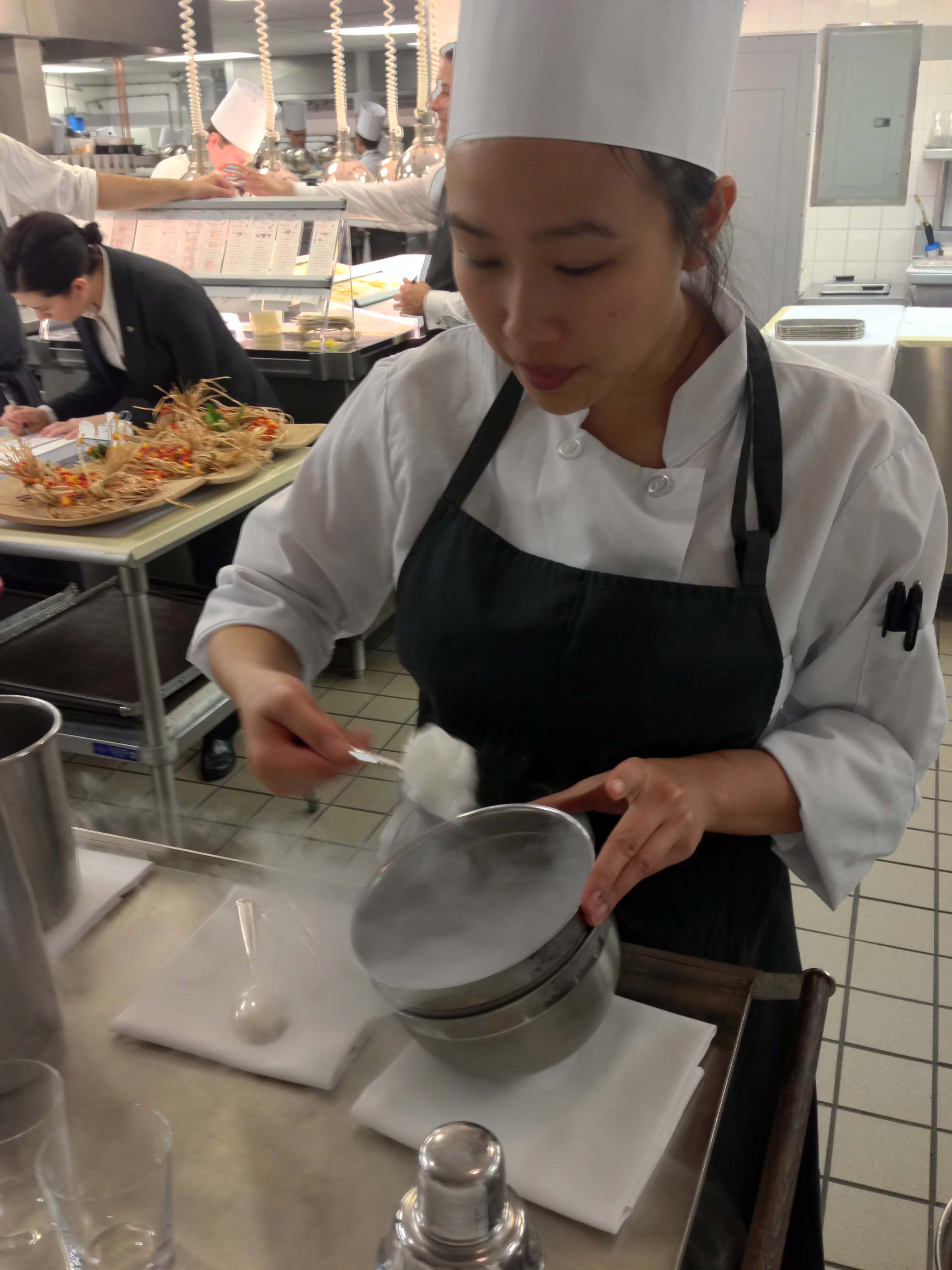 Once in the kitchen, one of the chef’s made a molecular-gastronomy-type drink. It was pretty cool (both literally and figuratively — liquid nitrogen!)