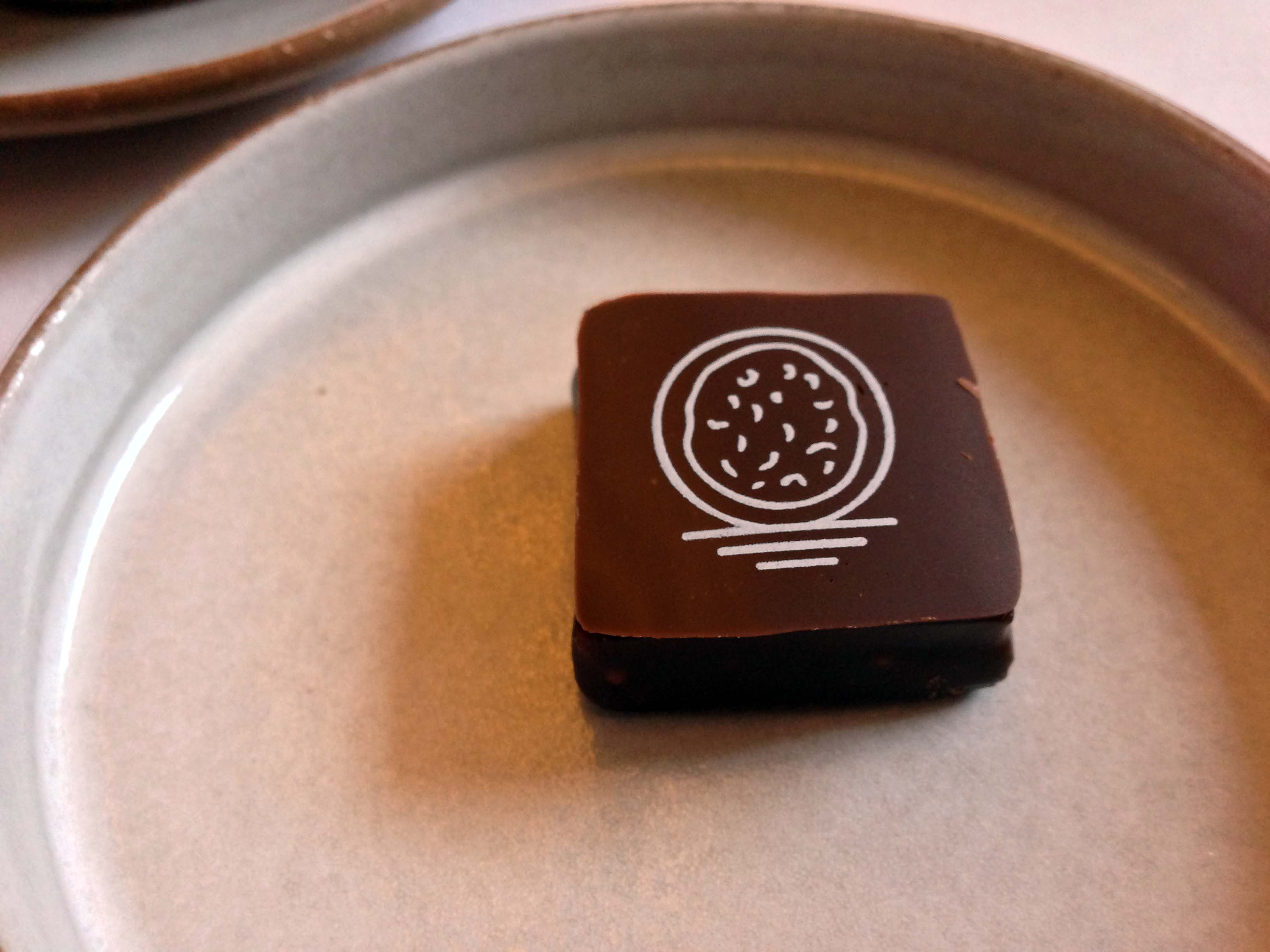 Before serving the Chocolate, they had a little presentation. In a custom deck of cards, each card had a different ingredient on it. You were asked to choose one. I saw bacon on one card, so as Sue (our waitress) was shuffling the deck, I counted the cards. Sure enough, I picked it (luck? what luck? All skill! 🙂 ) but then she ‘eliminated’ that as a choice. PFFT. She palmed a couple of cards back on the deck, and flipped them over. Espresso and pomegranate. We flipped the chocolate pieces over, and those just happened to be the flavours of the chocolates we had on our dishes. MAGIC.