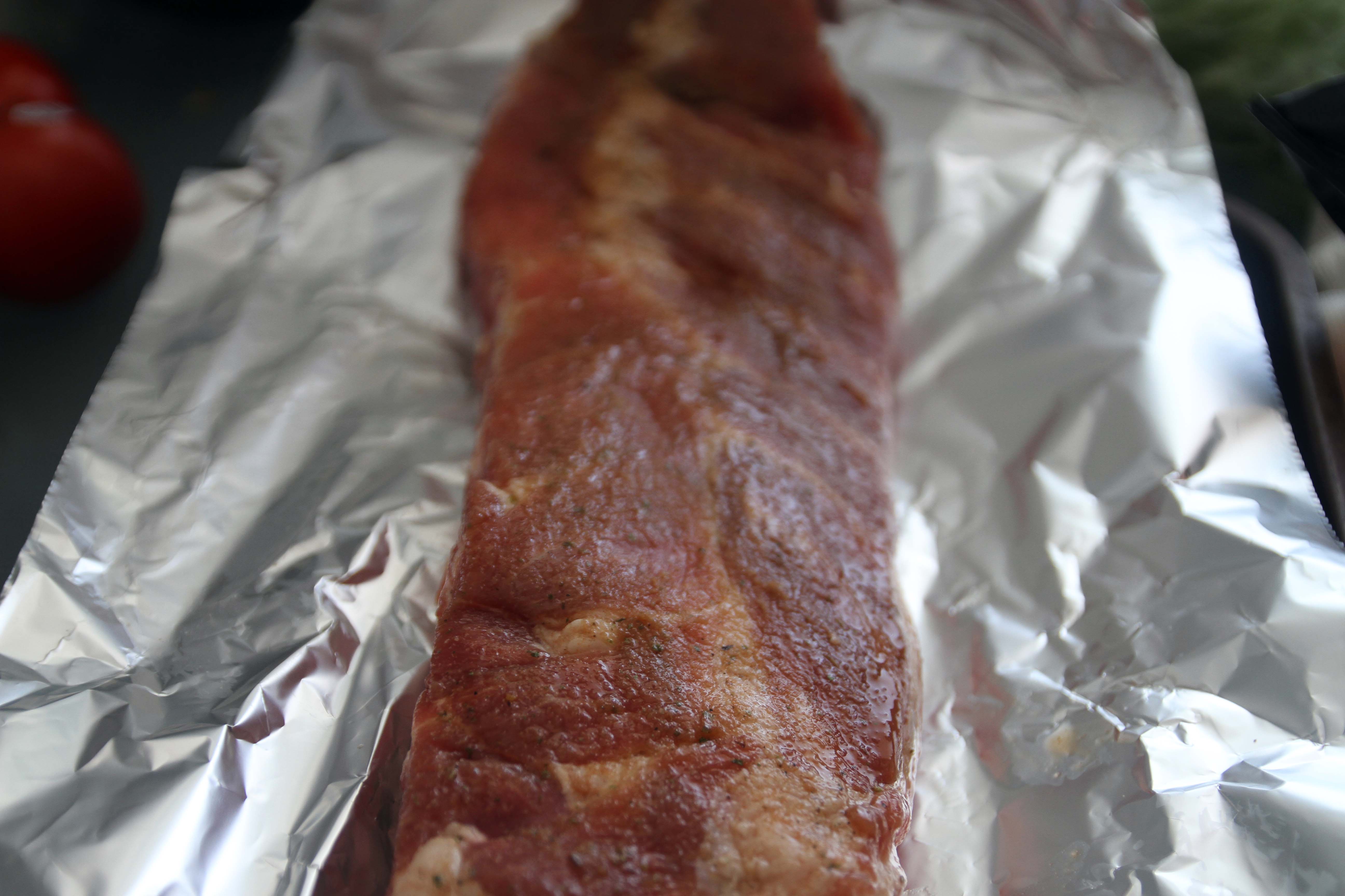 Take the BBQ ribs out of the oven and let them cool. At this point, all of your prep work is done. You can actually place everything in the fridge until you are ready to host your bbq!