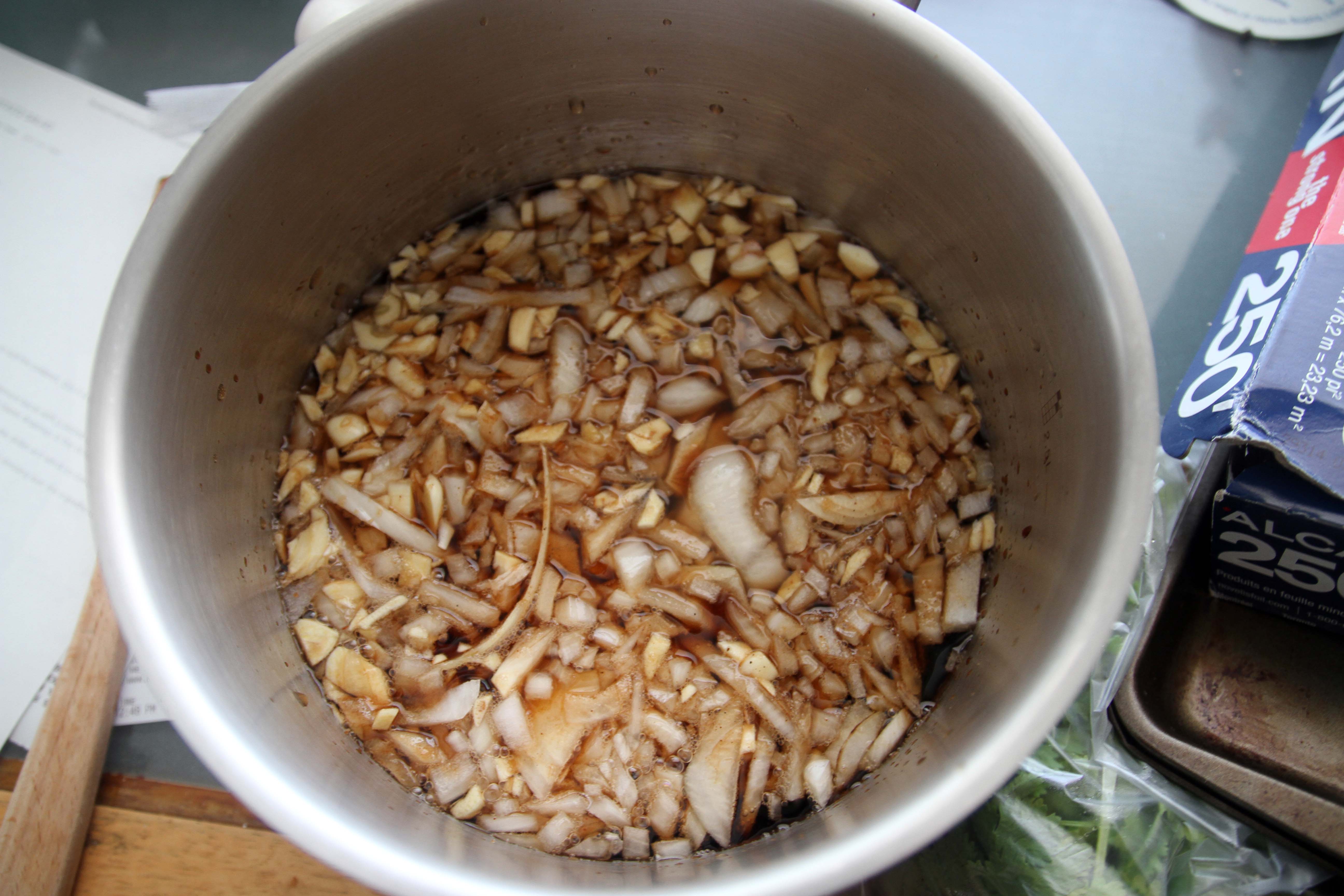 Dice your onions, and mince the garlic. In a large sauce pan, pour in the Cola, add in the Garlic and Onions, squeeze in the Ketchup, add a few dashes of Worchestershire Sauce, and some Lemon Juice. To sweeten it up a bit, add a couple spoons of Brown Sugar. I was running of out Ketchup, so I used some store bought BBQ sauce as a substitute.