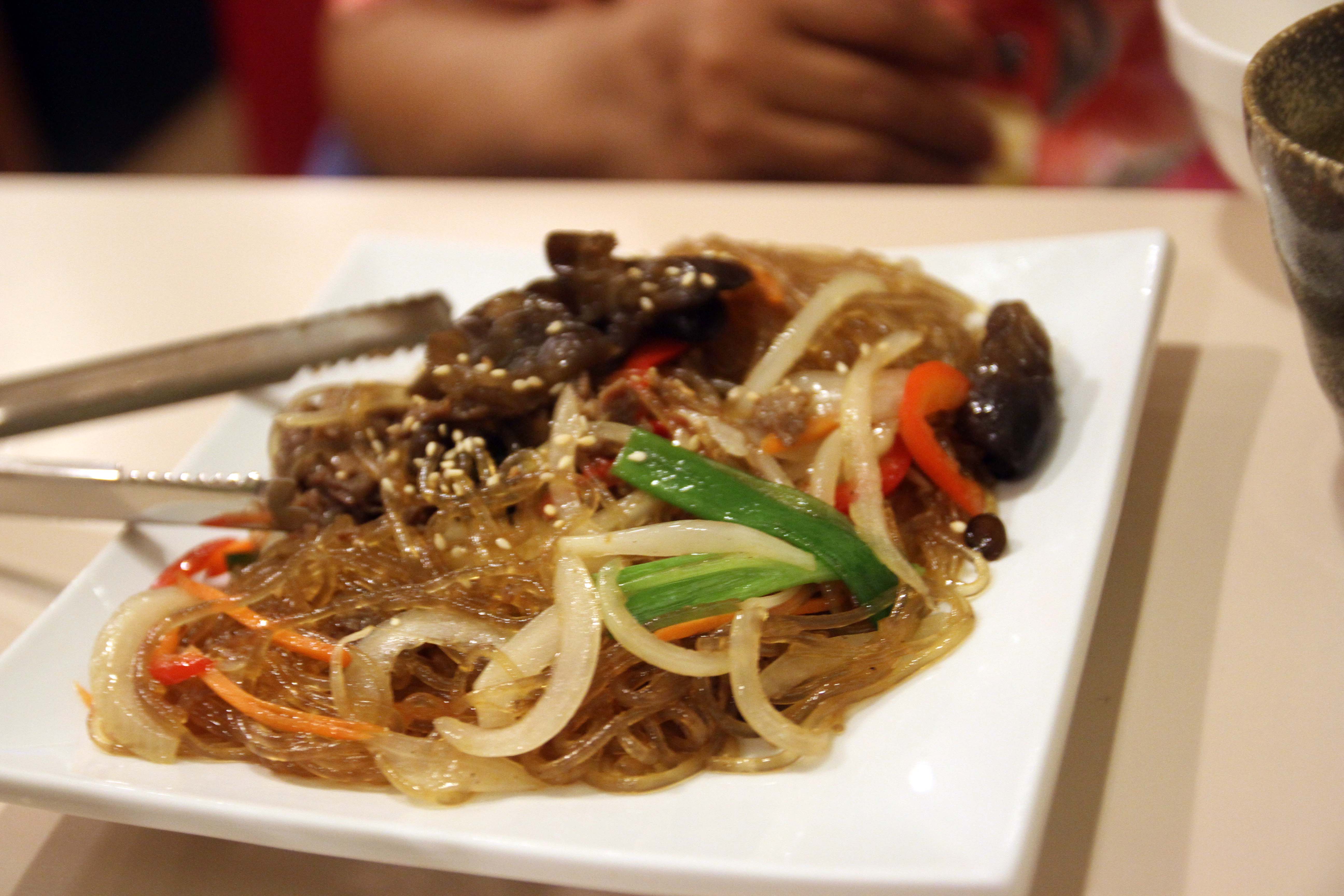The Jap Chae came out next. At this point, we noticed how quickly the food was served to us. Normally, in a small family restaurant, things are a little bit slower. Not here — we weren’t expecting the food to come out so fast!