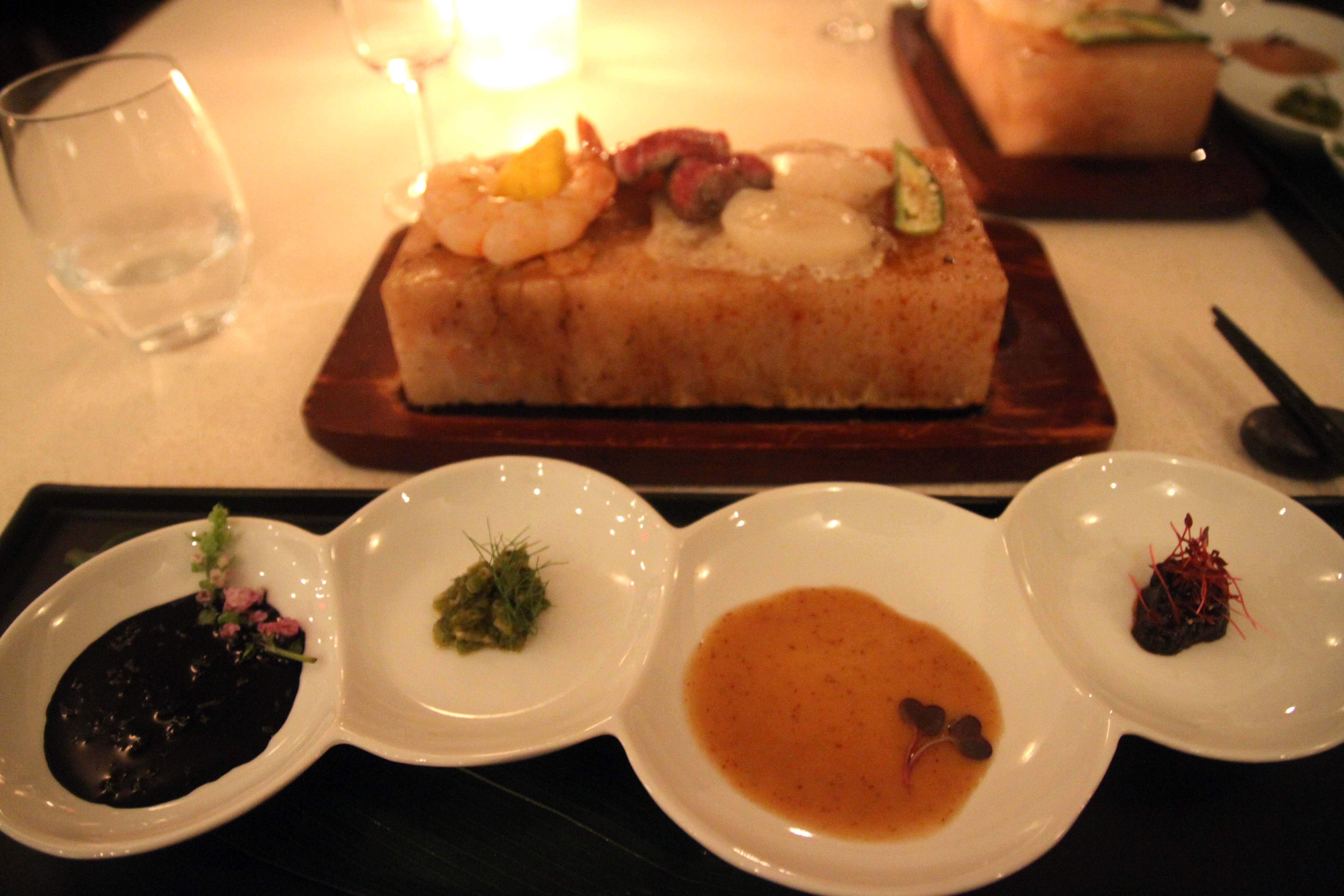 Starting off, the amuse bouche and sashimi platter came out together.