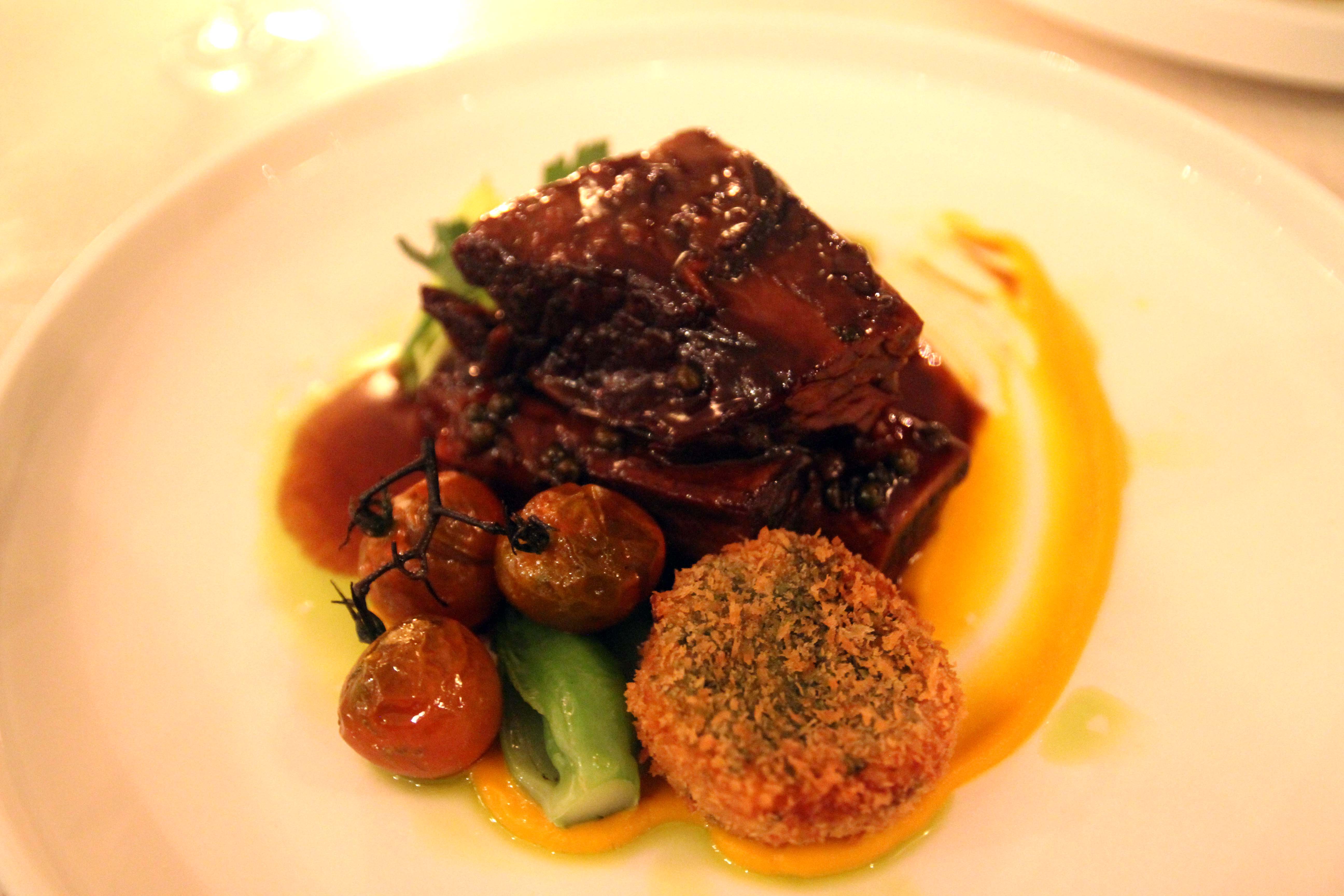 The next dish completely caught us off guard. After having so much delicate and meticulously prepared food, suddenly a huge plate of meat was infront of our faces. Shortrib with cherry tomatoes, and a kabocha croquet. Our appetites were suddenly hit with a sledgehammer. We threw in the towel, and ended up packing up this round to go. I was impressed with the kabocha the most. It was flavourful, and also had a nice variety of textures in each bite.